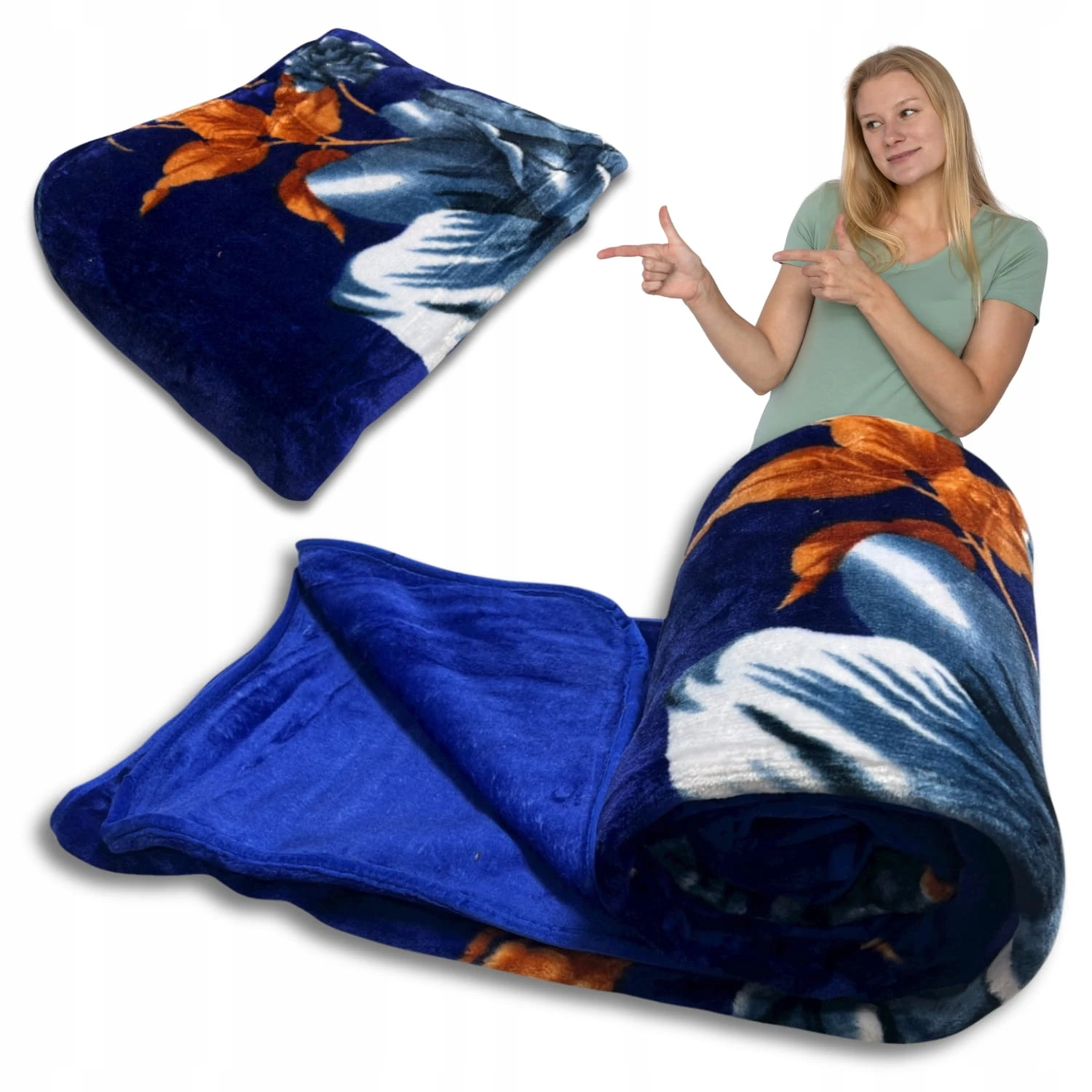 Gruby Koc Akrylowy 160x200 Ciepły na Zimę Dwustronny Wzór w KWIATY