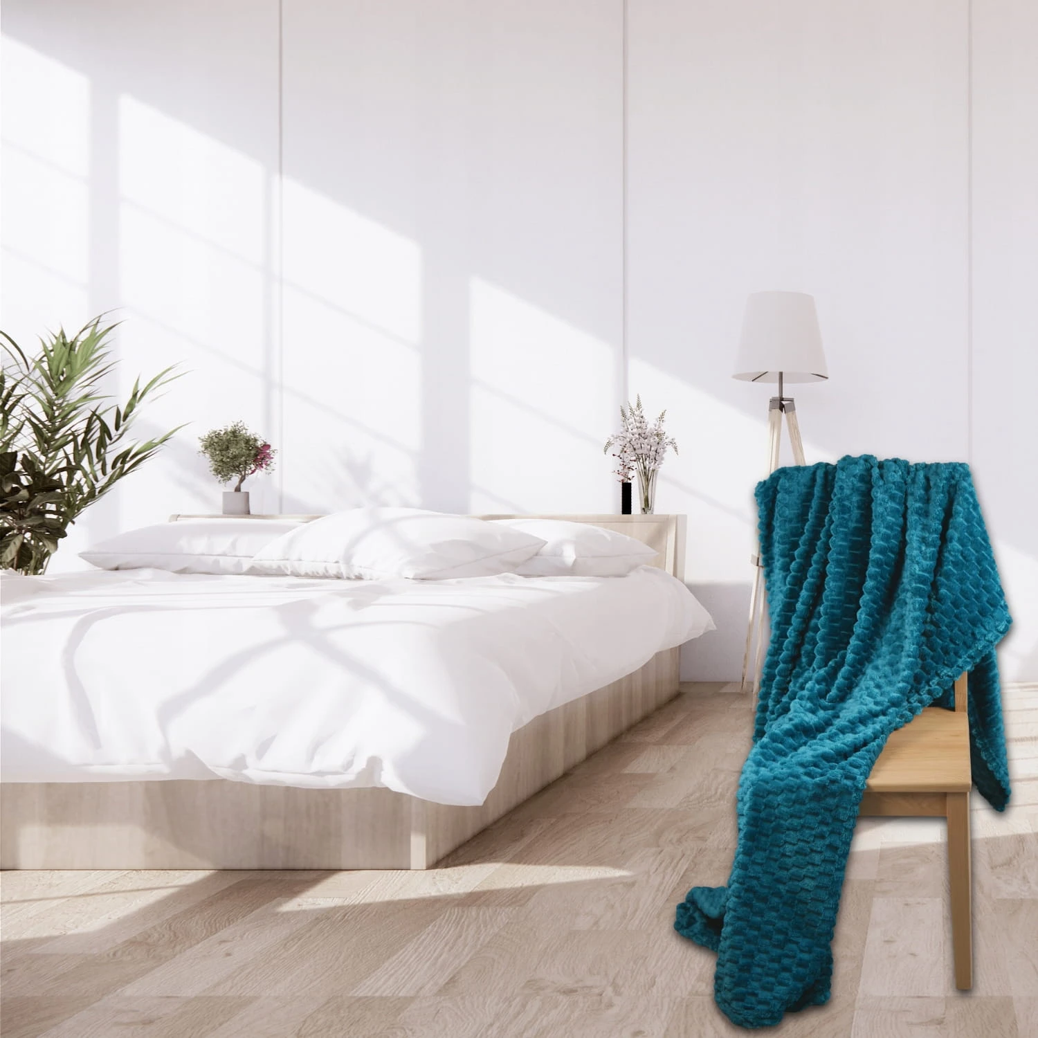 Koc 160x200 Polarowy Gruby Narzuta Pled Kapa na Łóżko Miękki Polski Turkus