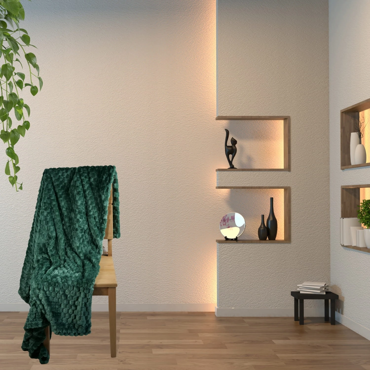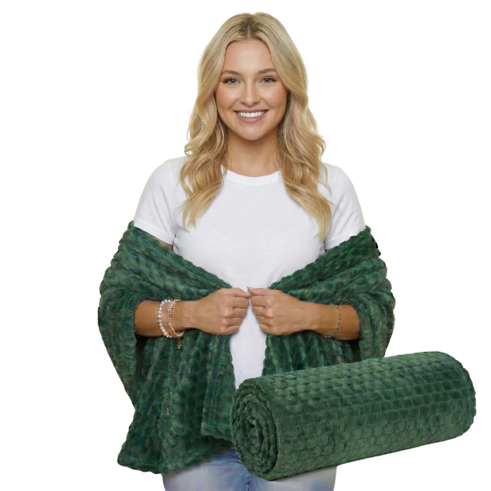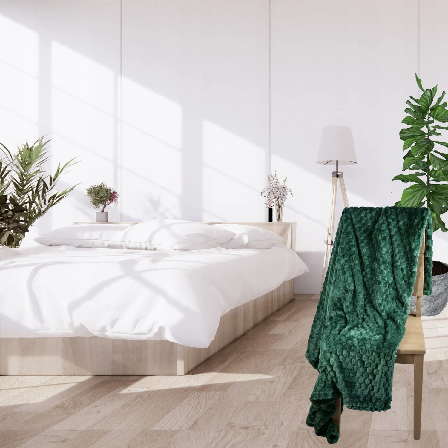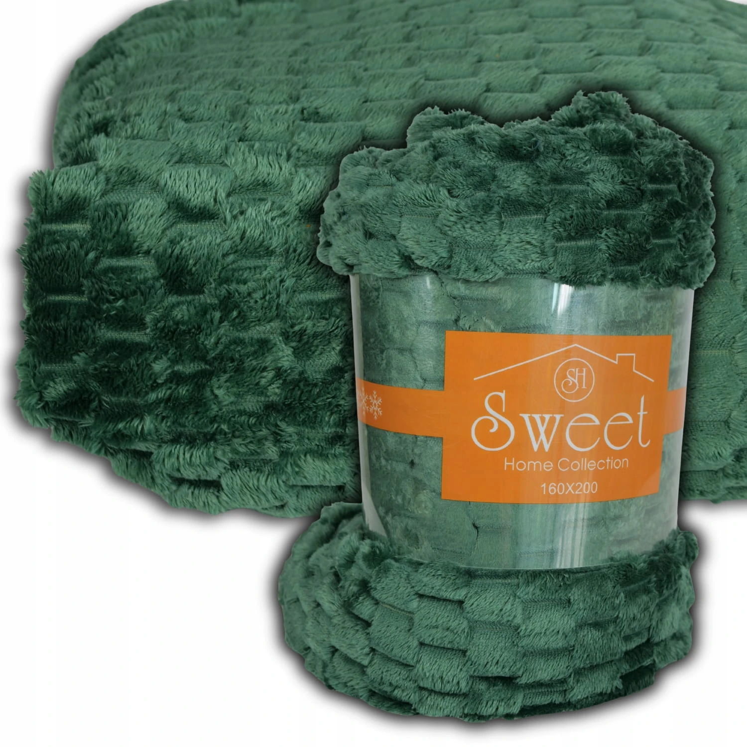 Koc Gruby Polarowy 160x200 Zielony Narzuta Pled na Łóżko BUTELKOWA ZIELEŃ