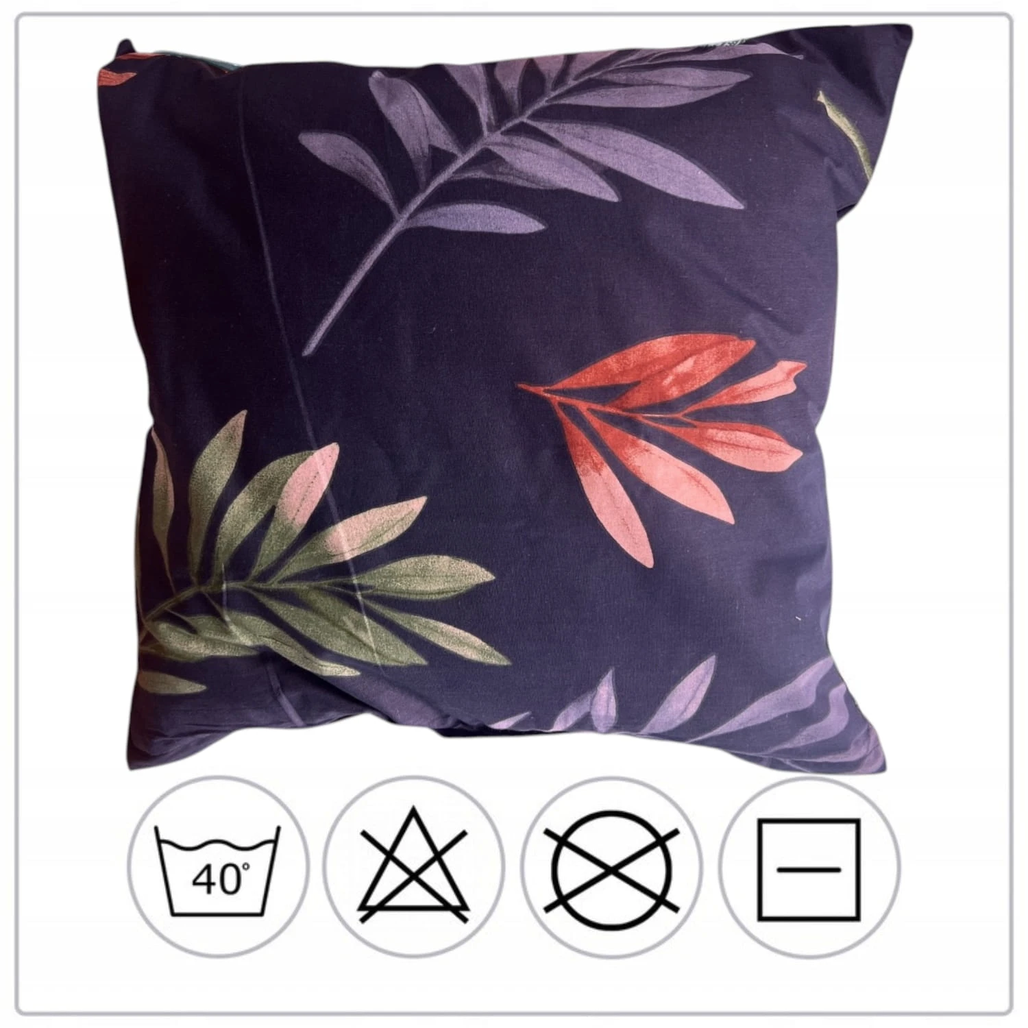 Poszewka 40x40 Bawełna Na Jaśka Zamek Błyskawiczny Granatowa w LIŚCIE Mocna
