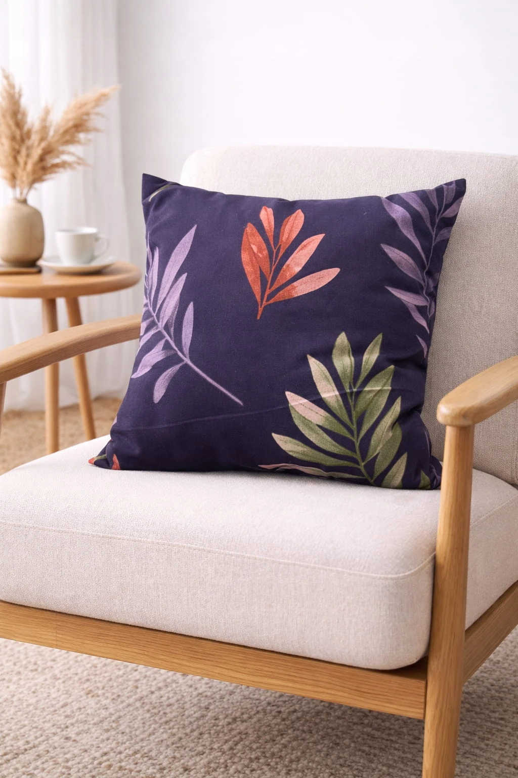 Twoje wnętrze opowiada historię - niech każdy element ją wzbogaca. Dekoracyjna poszewka 40x40 cm w kolorze granatowy ze wzorem w liście z naturalnej bawełny dodaje pomieszczeniu przytulności i stylu. Hipoalergiczny materiał sprawia, że możesz z niej korzystać bez obaw, nawet jeśli masz wrażliwą skórę lub w domu mieszkają mali alergicy.